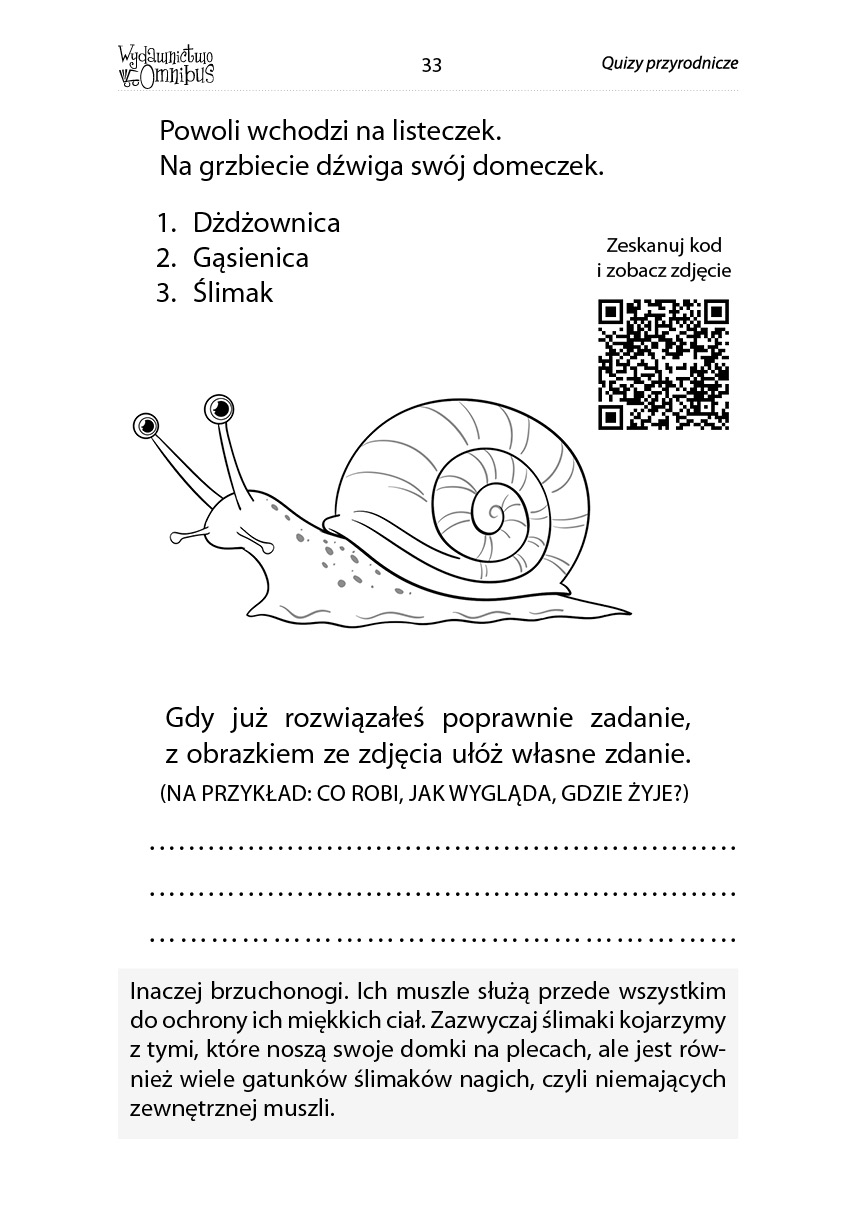 Co naprawdę jedzą jeże? Jak nazywa się zwierzę, które wygląda jak wąż, ale jest jaszczurką? Czy wiewiórki wiją gniazda? I jak rozpoznawać tropy zwierząt? Te i inne ciekawostki znajdziesz w naszej książce.